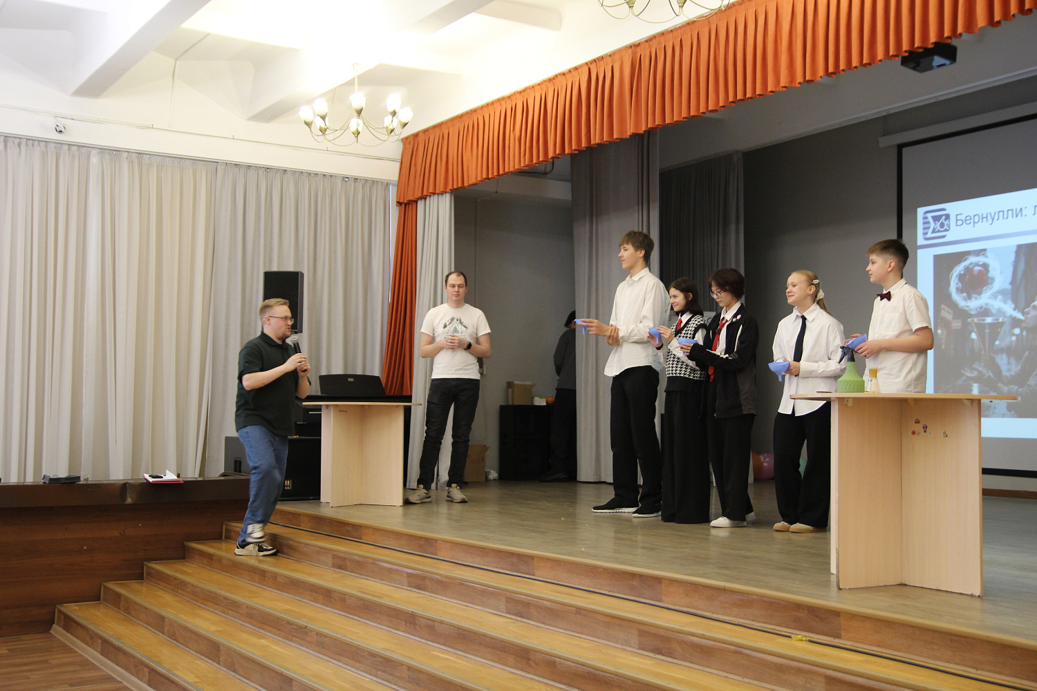 Об учебе в научном профиле рассказал куратор направления — Юрий Николаевич Маляр, кандидат химических наук, доцент. Затем участники погрузились в мир науки в формате детективного расследования: наблюдали за зрелищными опытами, выдвигали гипотезы, искали объяснения, а затем сравнивали с объяснениями учёных. Завершая интенсив, ребята сражались в научном квизе, который подготовил и провёл Зимонин Дмитрий Валерьевич, кандидат химических наук.